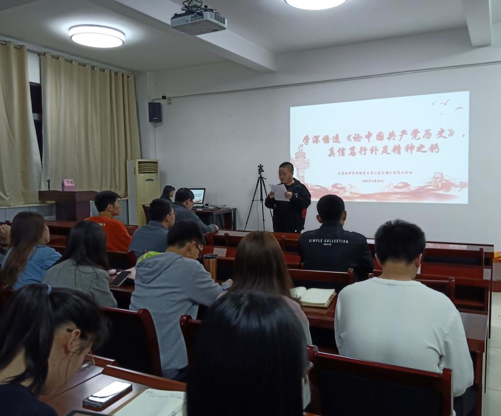 为积极响应党中央的号召,深入学习习近平总书记关于中国共产党历史的重要论述,使广大学生党员学好党史、新中国史、改革开放史、社会主义发展史,3月24日晚20点,万象城官网学生第二党支部在文津楼3412报告厅开展了“学深悟透《论中国共产党历史》,真信笃行补足精神之钙”主题党日活动。本次活动由第一党小组组长刘真同志主持,支部全体同志参加了本次活动。