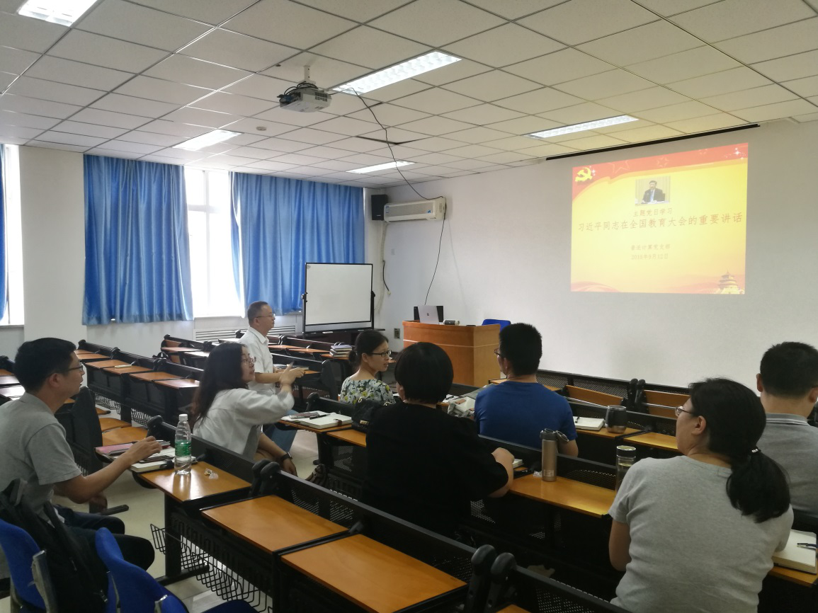 会上,路纲同志首先传达了近期上级党组织部署的各项工作的精神,与会同志以问答的形式集体学习讨论了“两学一做”学习教育应知应会内容,包括四个进一步、五个着力、三会一课、四讲四有、四有好老师、四个全面战略布局、五大发展理念、四个意识等,同志们表示,这些总结非常到位有力、鼓舞人心,在党的正确领导下,伟大中国梦定能实现。王小明同志指出,温故而知新,要通过把教学科研业务做好来巩固体现“两学一做”学习教育成果,在他的倡议下,与会同志就青年教师的教学能力发展展开了热烈讨论。胡曦明同志结合自身在教学中的独到体验对青年教师教学进行了细致入微的指导,卢俊岭、张立臣、于汪洋、苏玉萍、王亮等同志纷纷提出各自意见。王小明同志总结道,众人拾材火焰高,通过集体努力,从点滴做起,久久为功,一定能提升教学水平,做学生满意的好老师。