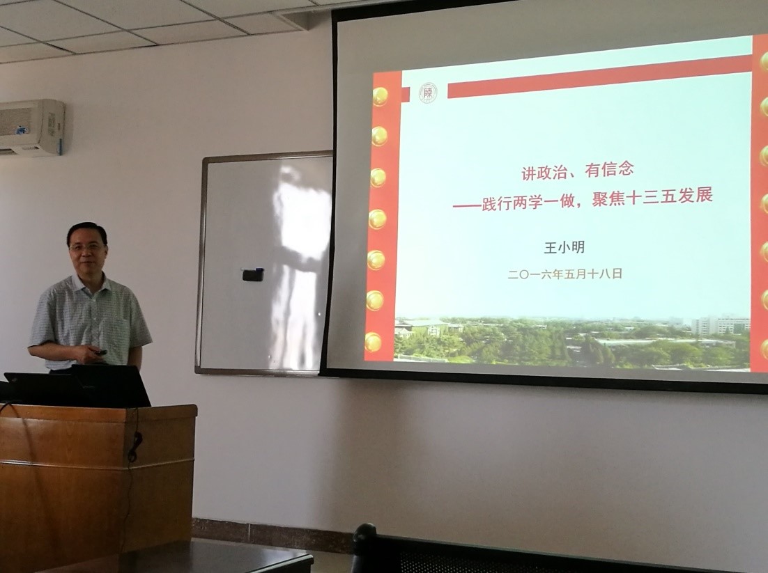 王小明同志做了《讲政治、有信念——践行两学一做,聚焦“十三五”发展》的党课宣讲。他从为什么要学和学什么讲起,强调作为党员干部要讲政治,有政治使命感,做到心中有党,时刻保持干事创业、开拓进取的精气神。做一名合格党员,首先要自觉守住为人、做事的基准和底线,表里如一,自觉学习党的理论知识;其后,还应将学习、讨论和实际工作结合起来,在实现个人发展的基础上,为所在单位和国家做更大贡献。王小明同志进一步结合学院“十三五”规划发展,勉励支部成员在做合格党员的基础上为学院发展多做贡献。