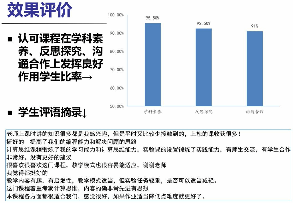 以普适计算党支部成员为核心的《计算思维》课程团队潜心问道、集思广益,科学合理地拓展了专业课程的广度、深度和温度,从课程所涉专业、行业、国家、国际、文化、历史等角度,全面提升课程的知识性、人文性,提升引领性、时代性和开放性,创新上好课程思政,为培养担当民族复兴大任的时代新人,培养德智体美劳全面发展的社会主义建设者和接班人,汇聚智慧和力量。