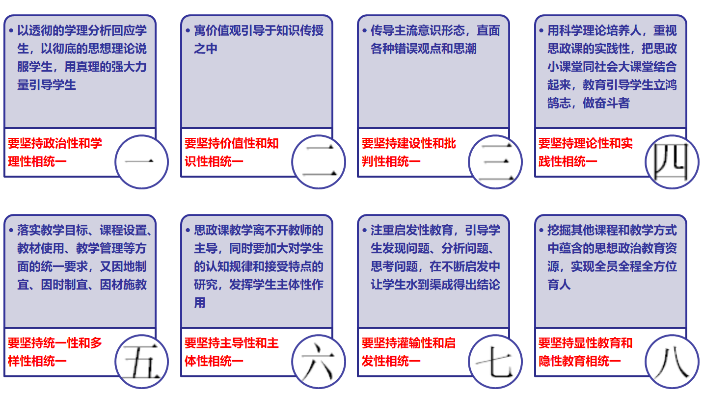 ——推进习近平新时代中国特色社会主义思想进教材进课堂进头脑。坚持不懈用习近平新时代中国特色社会主义思想铸魂育人,引导学生了解世情国情党情民情,增强对党的创新理论的政治认同、思想认同、情感认同,坚定中国特色社会主义道路自信、理论自信、制度自信、文化自信。