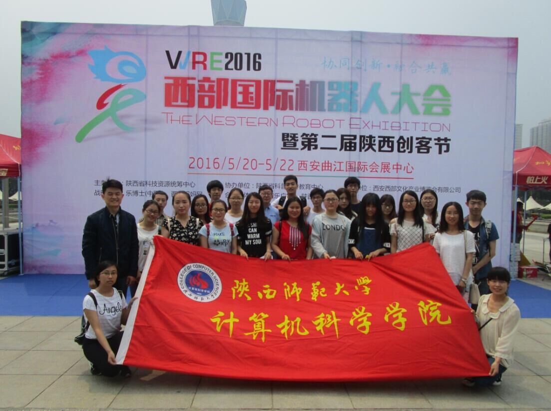 2016西部国际机器人大会暨第二届陕西创客节于2016年5月20日至22日期间在曲江国际会展中心召开,这是一次了解人工智能等信息技术领域最新进展、开阔视野的良机,机器人尤其是智能机器人的快速发展将深刻影响人类文明进程,万象城官网也正在筹划相关课程的建设。普适计算党支部及科研团队成员胡曦明、苏玉萍、董蓓、张立臣、路纲、张钰、张锲石等分批次到大会体验和了解了相关情况,参会的还有实验室部分研究生。其中,胡曦明老师带队计创班本科生,进行了观摩和学习。