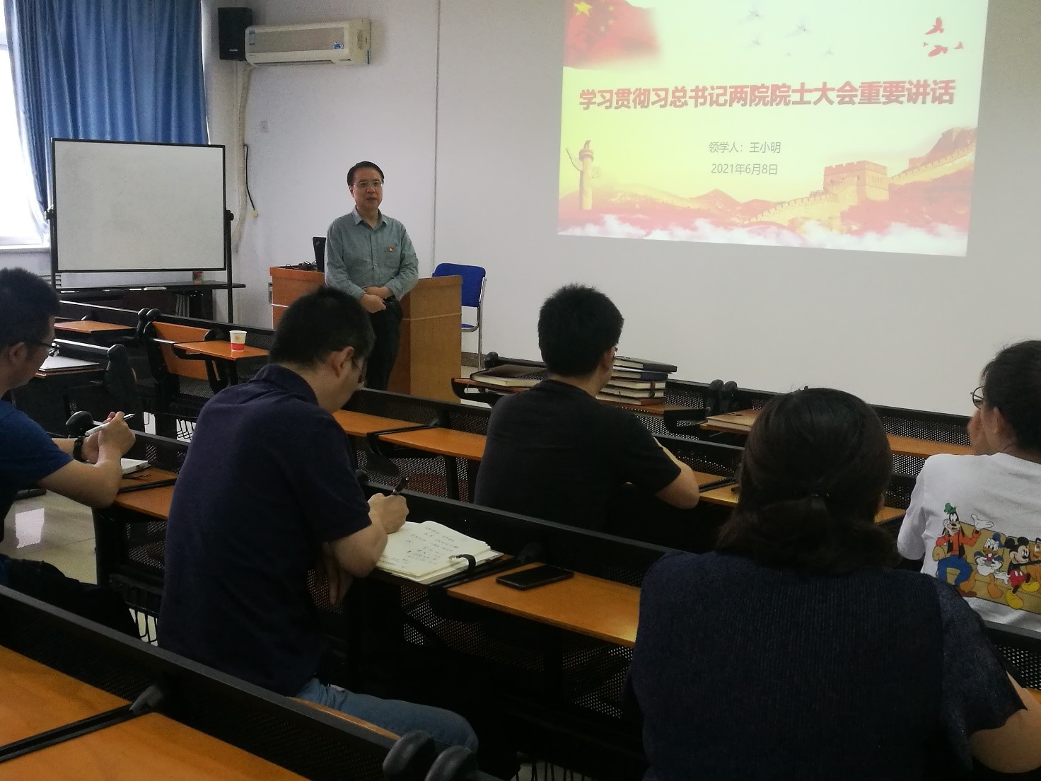 系统的学习完相关知识内容后,王小明院长做了思想内容解读,引导、要求支部同志们重视党史、新中国史、改革开放史和社会主义发展史与党建理论知识学习,提高自身认识水平,提高政治判断力和政治站位,做到学史明理、学史增信、学史崇德、学史力行,将学习成果应用于促进教学科研业务,推动课程思政工作取得进展,带动师生学党史、悟思想、办实事、开新局,大家齐心聚力,以昂扬姿态奋力开启全面建设社会主义现代化国家新征程,以优异成绩迎接建党一百周年。