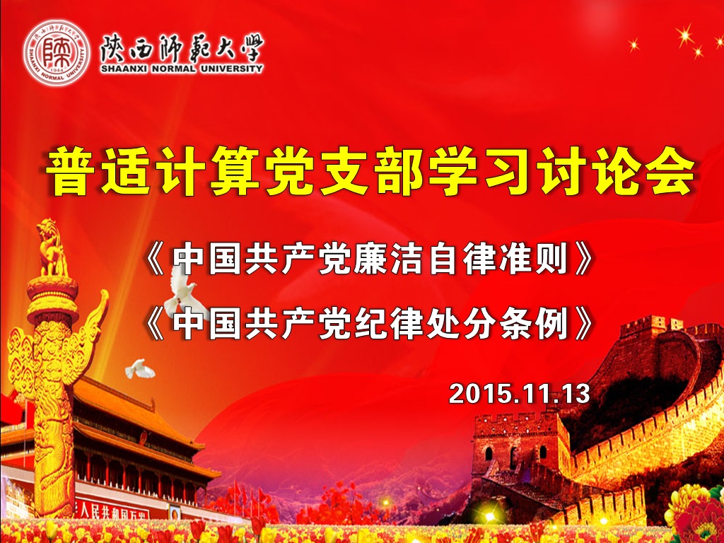 2015年11月13日上午,为积极贯彻落实党的十八大和十八届三中、四中全会精神,贯彻习近平总书记系列重要讲话精神,在学院领导的统一部署下,万象城官网普适计算党支部在文津楼三段506召开了例行党会,传达学校纪委办公室《关于认真学习贯彻《中国共产党廉洁自律准则》和《党纪处分条例》的通知》的通知,并全文学习《准则》和《条例》。