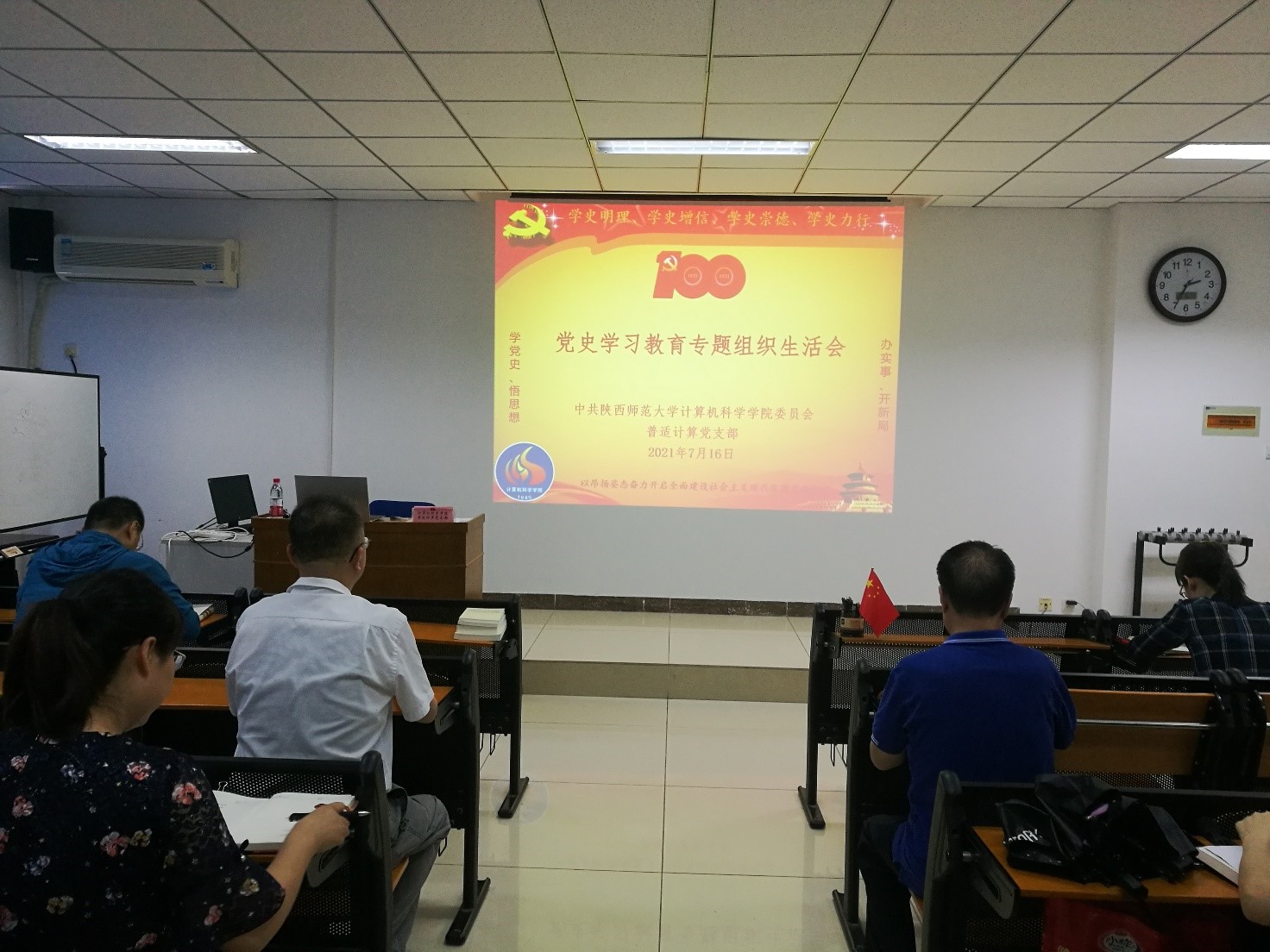 根据学校《迎接建党100周年行动方案》和《关于开展党史学习教育的实施方案》要求,普适计算党支部书记路纲同志参加了学校党委举办的《习近平新时代中国特色社会主义思想概论课和党史学习教育专题讲座》,并将相关学习内容向支部做了汇报,落实到课程思政建设中。