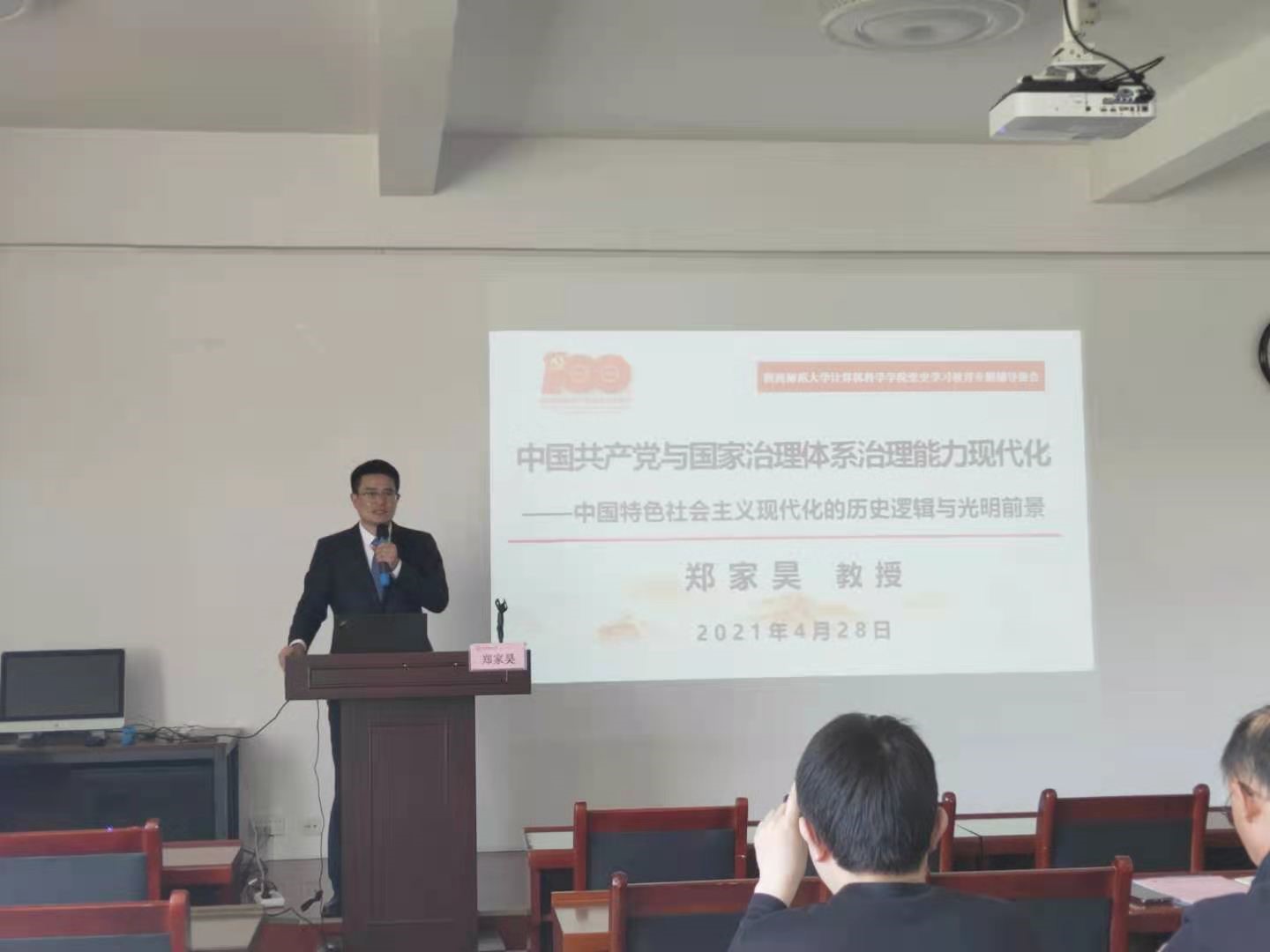 普适计算党支部全体党员参加了由学校党史学习教育教授宣讲团成员郑家昊教授为学院党员做的专题报告,郑教授从党史学习教育的重大决策、中国共产党百年辉煌历程、中国共产党领导的社会主义现代化和国家治理现代化的战略意蕴四个方面出发,做了题为《中国共产党与国家治理体系治理能力现代化》的专题辅导报告。通过报告,了解了服务型政府履行职能的创新方式和方向,当前是国家治理体系和治理能力的现代化的关键时期,学院的发展可以从中获得借鉴和助益。