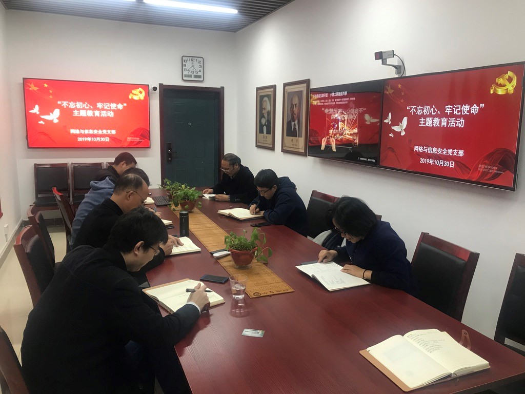 2019年10月30日下午,万象城官网网络与信息安全党支部在文津楼3531党员活动室开展了“不忘初心、牢记使命”主题教育学习会议。在校全体党员参加了本次活动,支部书记禹勇老师主持学习活动并为支部党员讲授党课。